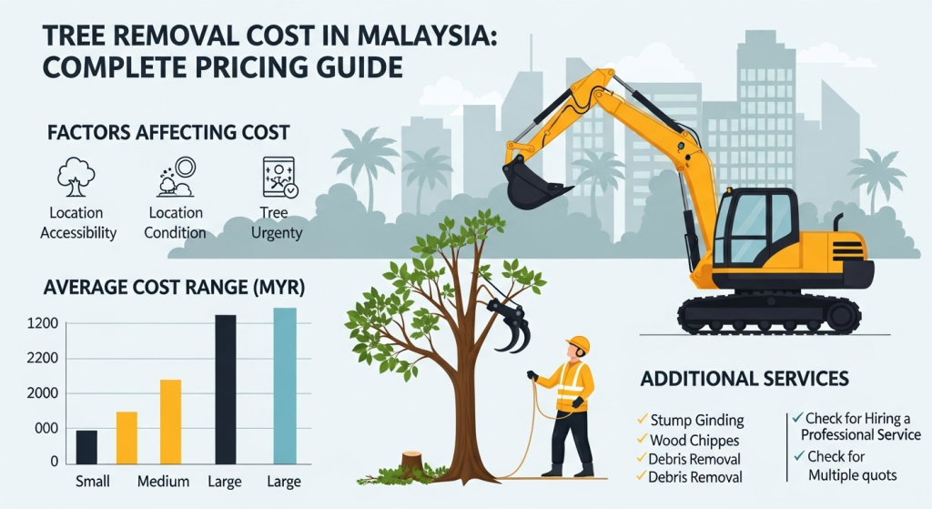 The cost of tree removal in Malaysia can differ greatly based on the complexity of the task, the location, and the species of tree involved. Transparency is essential; therefore, we have outlined the primary factors that affect the final price (in Malaysian Ringgit – RM) of professional tree cutting services.